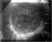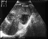 The basic difference between an acute abscess and an abscess of some duration is that, in the latter the body has had time to wall up the lesion by producing a layer of fibrous tissue around it. On sonography an abscess shows thick walls which may vary from a few mm to 1.5 cm in thickness. The echogenicity of the abscess also varies, abscesses generally become more sonolucent at this stage, some abscesses become more echogenic because of organisation of fluid (see Picture3).